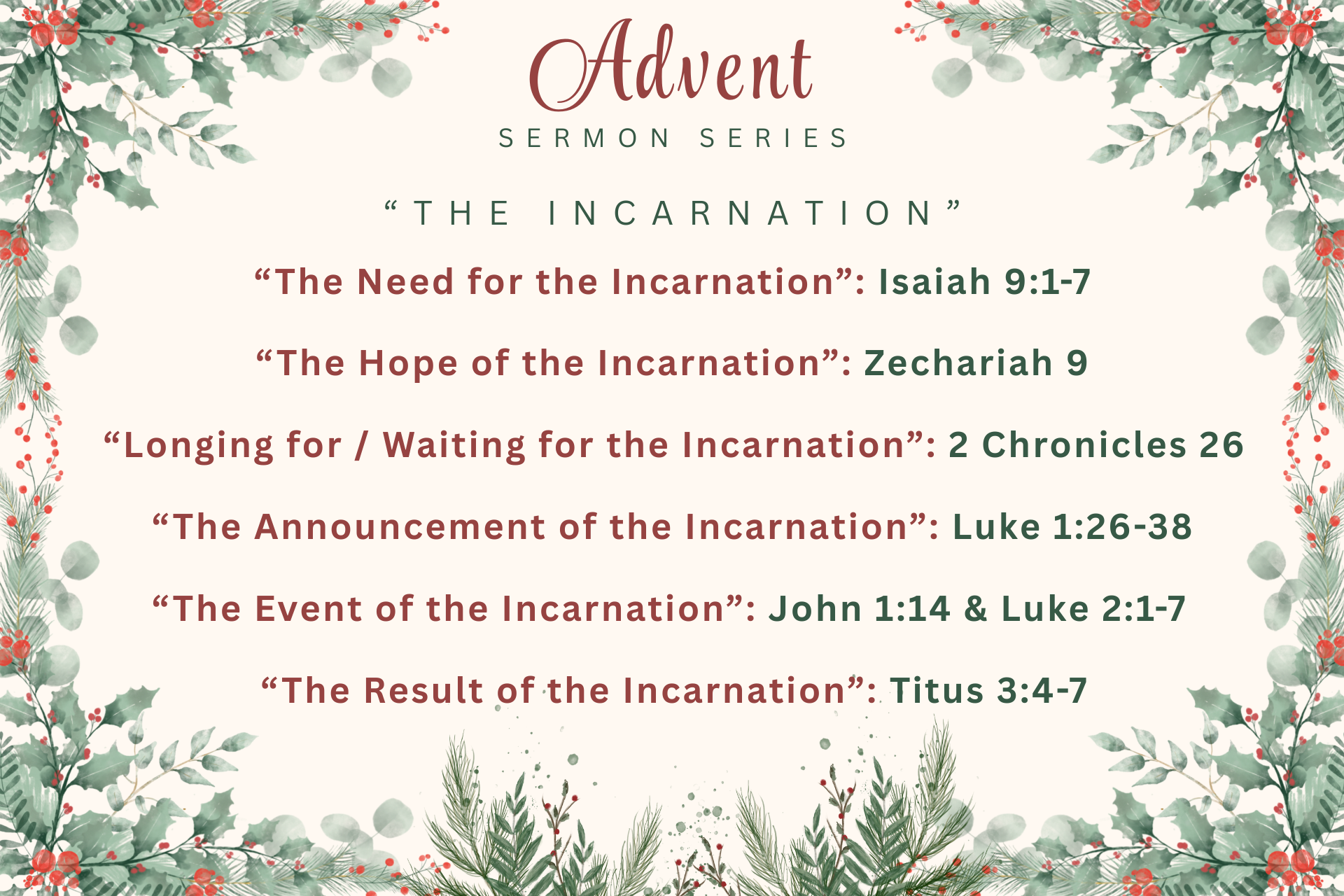 Join us for our Advent/Christmas sermon series November 30th through December 28th.