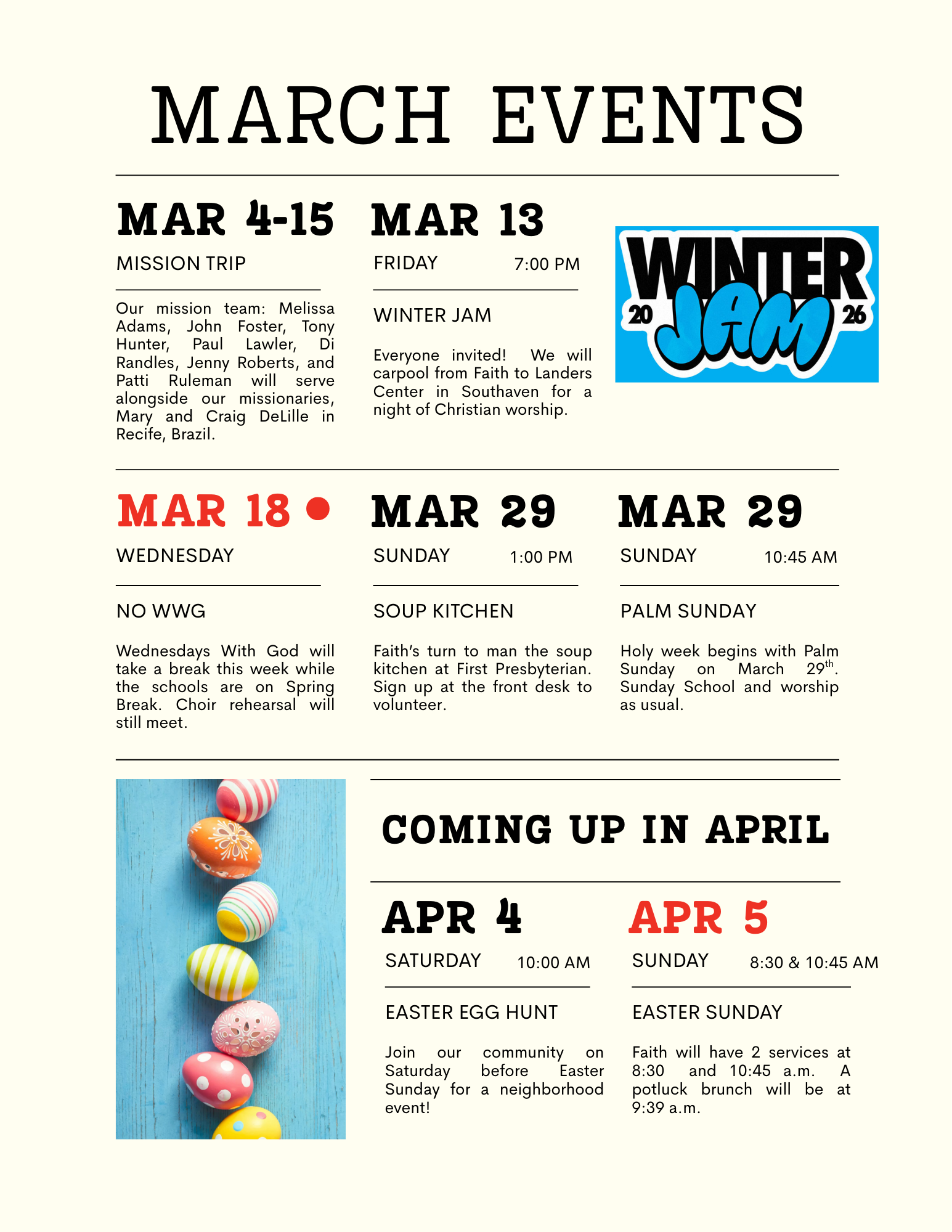 Sunday School 9:30amWorship Service 10:45am